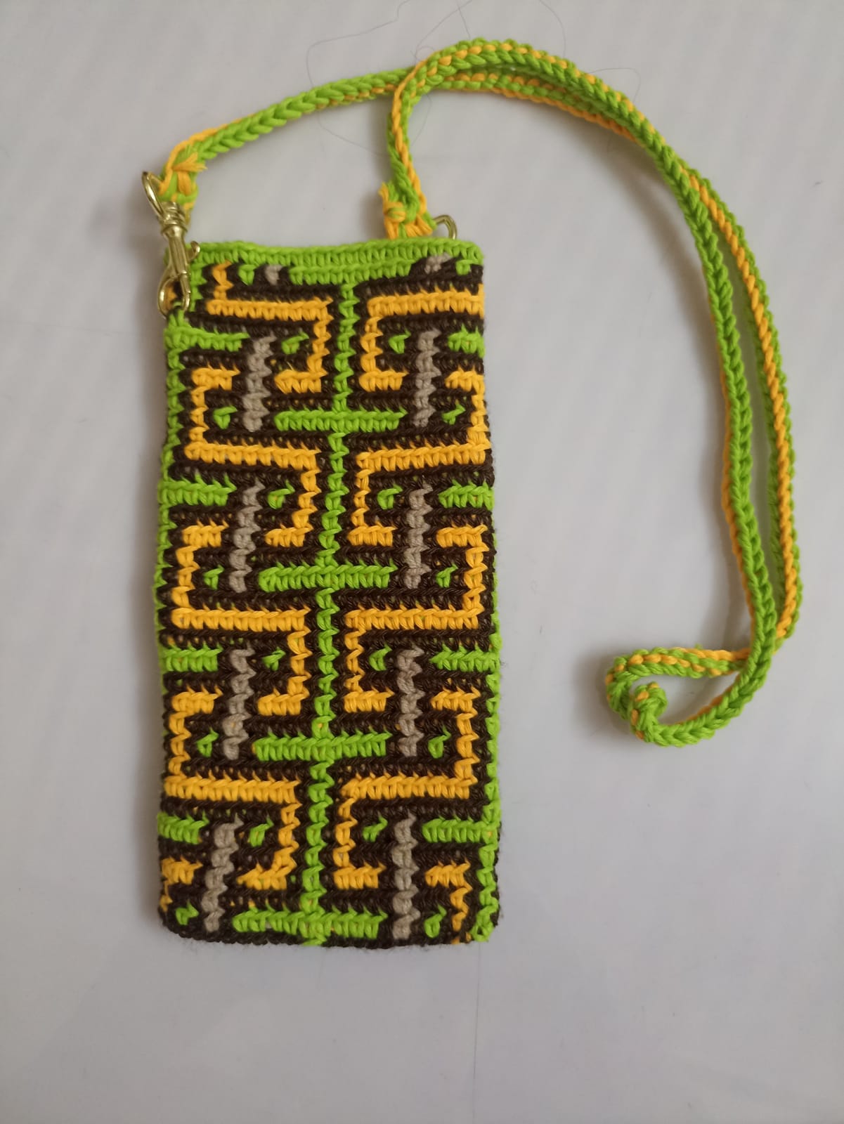 Handmade Crochet Phone Pouch with Strap – Colorful Modern Design
